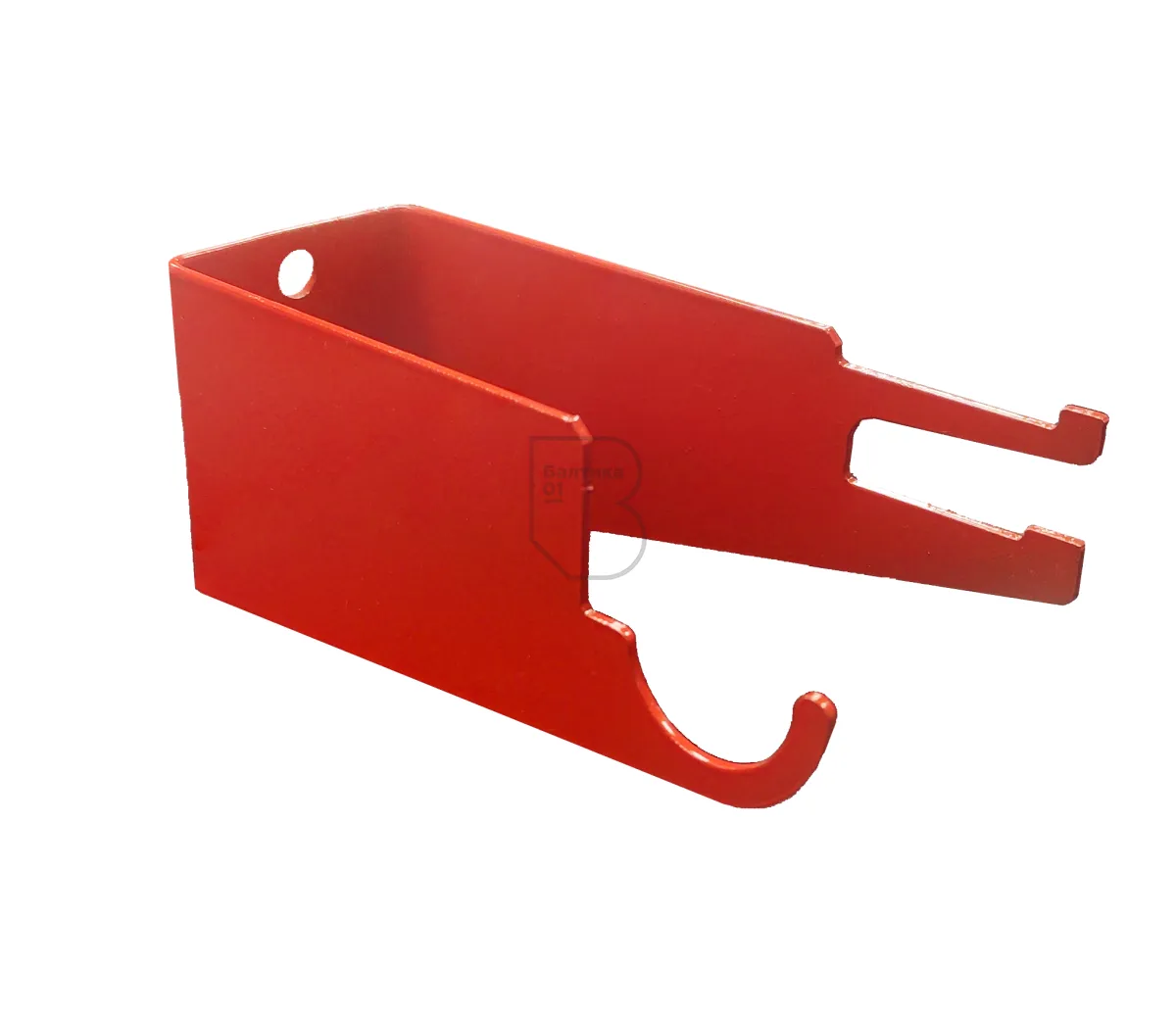 Кронштейн имеет специальные выемки: круглая выемка – под шланг, прямоугольная – под рычаг запорно-пускового устройства. Имеет влаго-морозостойкое порошковое покрытие. Цвет – красный. Преимущества – небольшие габаритные размеры, легкий вес, низкая цена