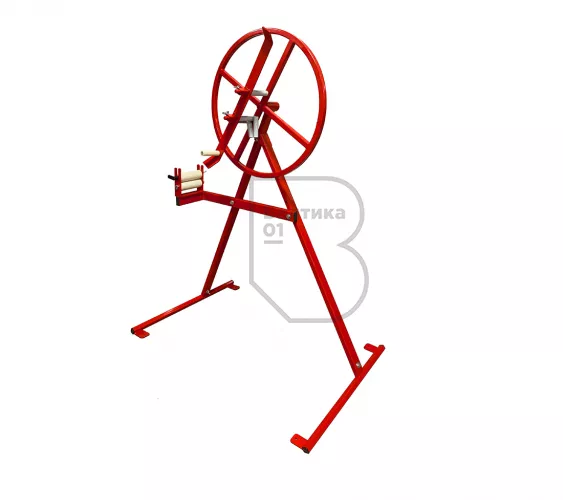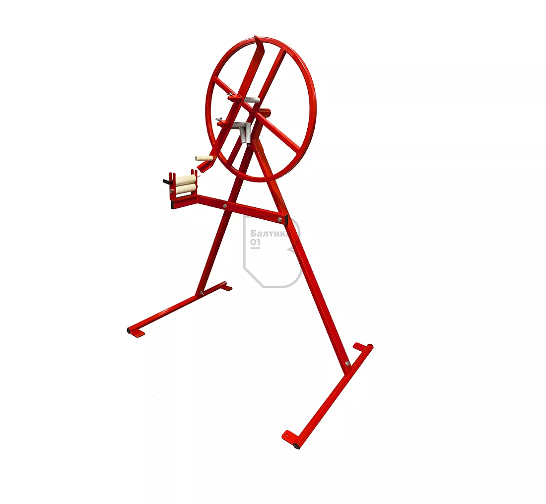 Станок для намотки в скатку и перекатки на новый шов пожарных рукавов "БАЛТИКА-01 П" имеет более компактные габаритные размеры и меньший вес по сравнению с аналогичными установками. Состоит из подставки, выполненной в виде раздвижной конструкции, в верхней части которой расположен узел вращения. Одна из спиц колеса вращения имеет два штыря для размещения на них наматываемого рукава. В комплект поставки входят втулки, предназначенные для удобства снятия рукава после намотки. Для фиксации рукава на штыри надевается ограничительная планка с рукояткой. Планка на штырях закреплена стопором. Для перекатки рукава на новое ребро имеется подвижный рычаг.