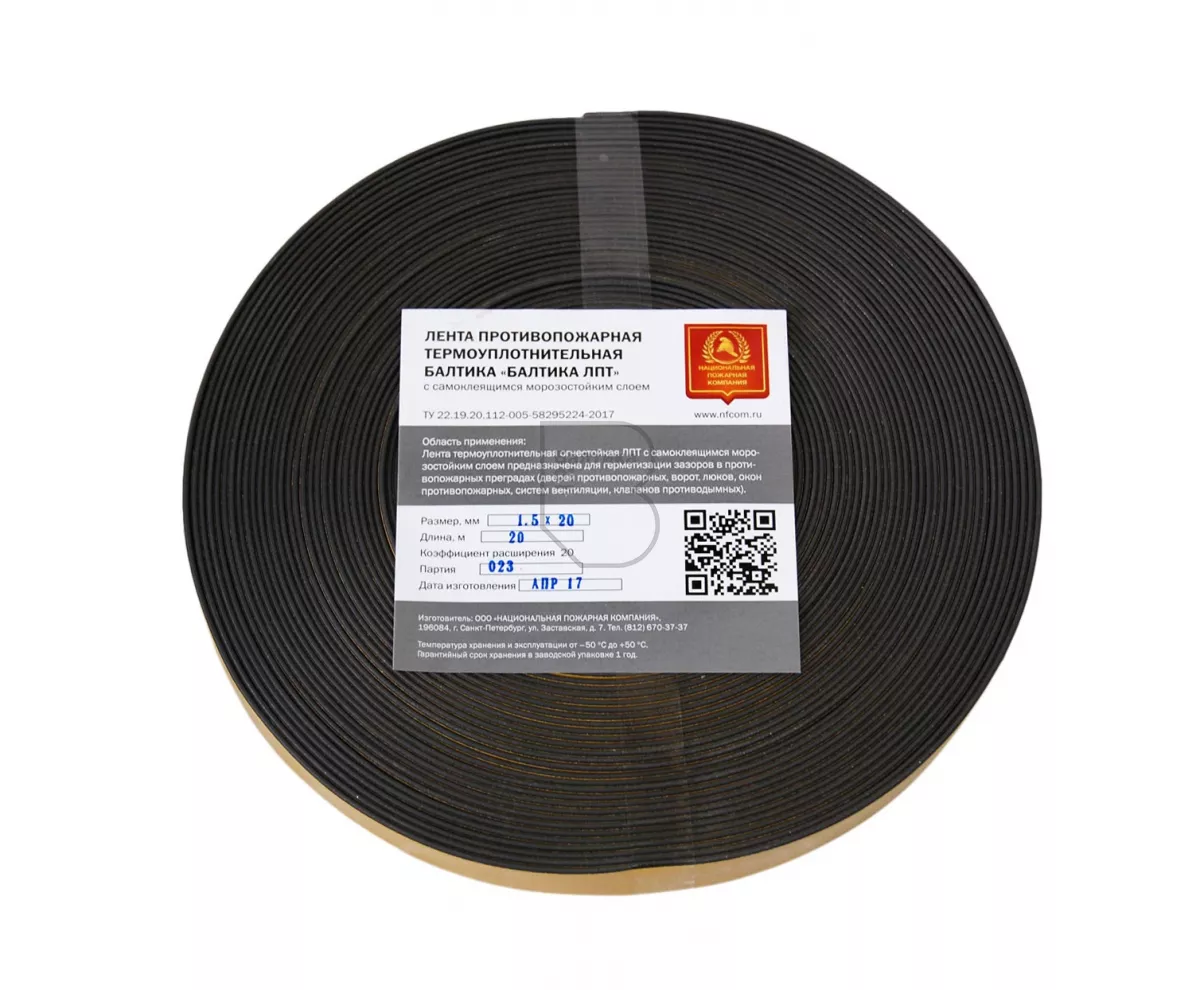 Лента противопожарная термоуплотнительная «БАЛТИКА ЛПТ» с самоклеящимся морозостойким слоем предназначена для герметизации зазоров в противопожарных преградах (дверей противопожарных, ворот, люков, окон противопожарных, систем вентиляции, клапанов противодымных).